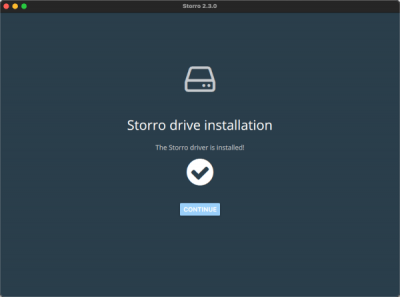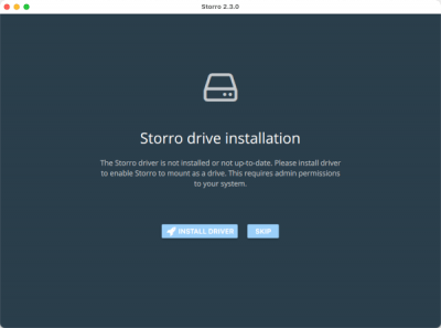 After you have successfully completed the installation, you can start Storro via Launchpad. On the first boot you will be prompted to install a driver. This is the Mac Fuse driver that causes a protected Storro drive to appear in the Finder. Click on Install Driver to install the driver.