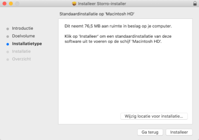 The installation wizard will guide you through the installation process. Click on ‘Continue’ to go to the next step of the installation. At the third step, click on ‘Install’ to install Storro. You will then be asked for your username and password. When you have completed the entire installation wizard, you can move the installation program to the Trash.