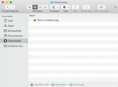 In de map Downloads vindt u het gedownloade installatiebestand, genaamd Storro-installer.pkg. Dubbel-klik op dit bestand om de installatie te starten.