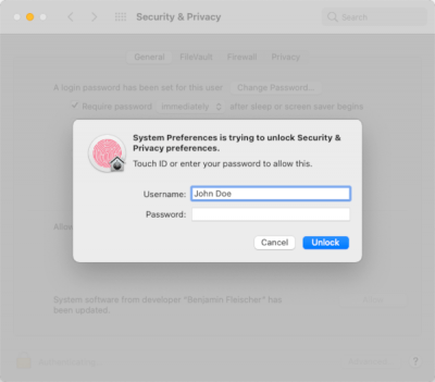 Na het openen van de Security Preferences komt u in het onderstaande scherm. Klik op het slot-icoon en voer uw wachtwoord in ter bevestiging. Vervolgens dient u op de knop Allow te klikken om de update van de driver te voltooien.